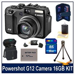 Amazon Deal On Canon G12 10MP Digital Camera w/ 5x Optical Image Stabilized Zoom & 2.8 inch Vari-Angle LCD W HD Video Super Bundle With 16 GB Secure Digital High-Capacity Memory Card, DigPro Deluxe Case, Hi-Speed SD USB 2.0 Card Reader, BP-7L 1150mah Battery Pack & More